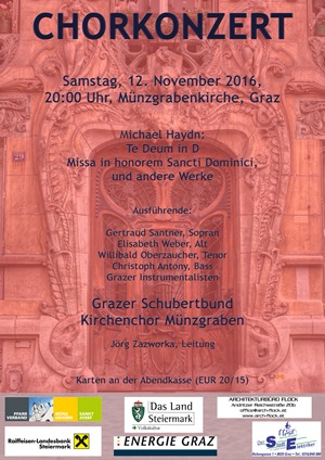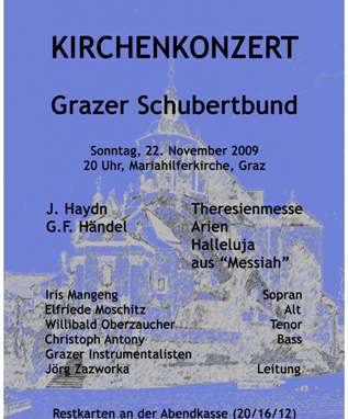 Zum Haydn-Jahr hat der Grazer Schubertbund die „Theresienmesse“, eine der bekanntesten geistlichen Kompositionen von Joseph Haydn, einstudiert. Weiters wurden Arien und das berühmte „Halleluja“ aus dem Oratorium „Messiah“ von G.F. Händel gesungen.